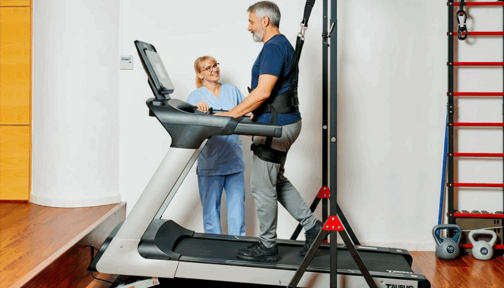 1. Cinta de marcha con descarga de peso corporal (Body Weight Support Treadmill Training)